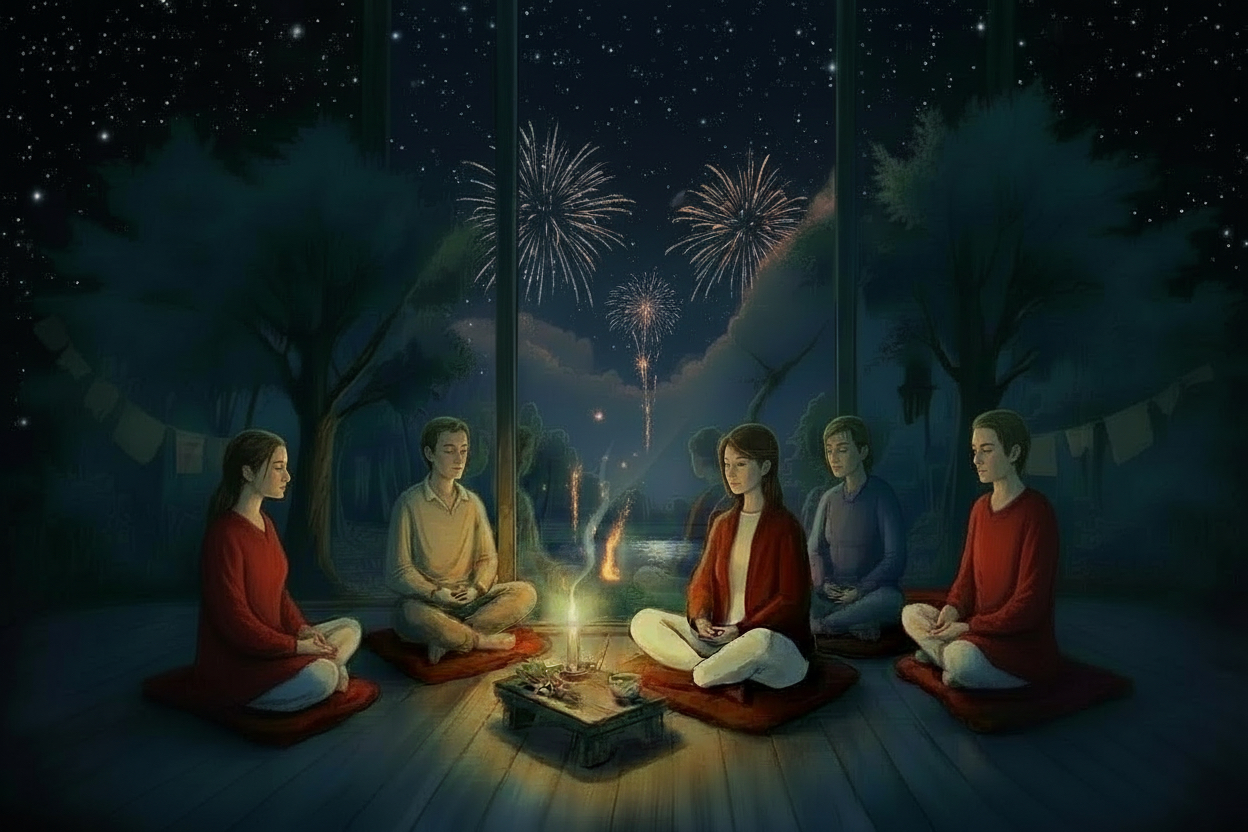 Wenn die Silvesterparty Dich nicht anspricht, und Du lieber in Stille das neue Jahr begrüßen möchtest, dann ist ein angeleiteter Body Scan, Kum Nye und ein Übergangsritual das Richtige für Dich.